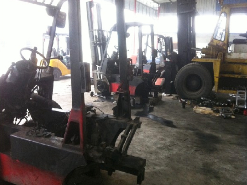 中叉连锁叉车大修厂一角